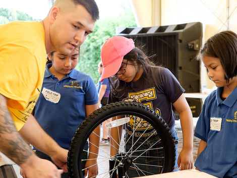 We partner with *Title One schools, where at least 75% of the students are low-income. We start the program with a pep rally at the school and end with a celebration when they receive their bikes.